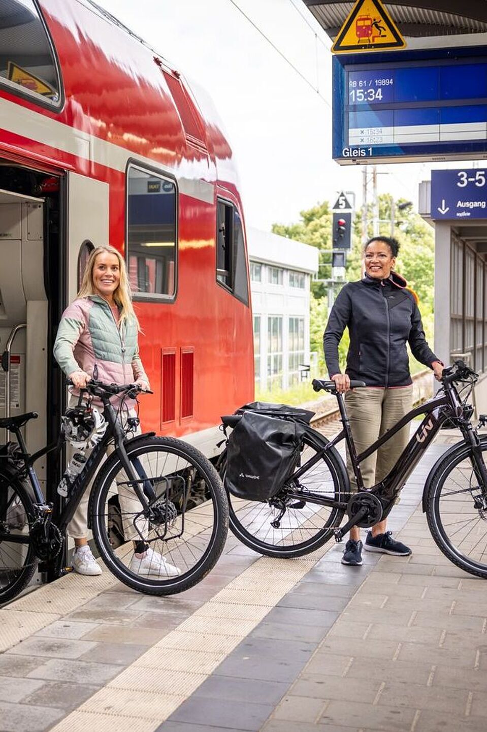 Mitfahren dürfen im Nah- und Fernverkehr klassische Fahrräder und Pedelecs. Fahrradanhänger müssen zusammengeklappt werden und brauchen ein Extra-Ticket. Für spezielle Fahrräder, etwa Tandems oder Liegeräder, gibt es Ausnahmeregeln. Hier gibt der Kundenservice Auskunft. Übrigens: Zusammengeklappte Falträder fahren als Gepäckstück kostenlos mit.