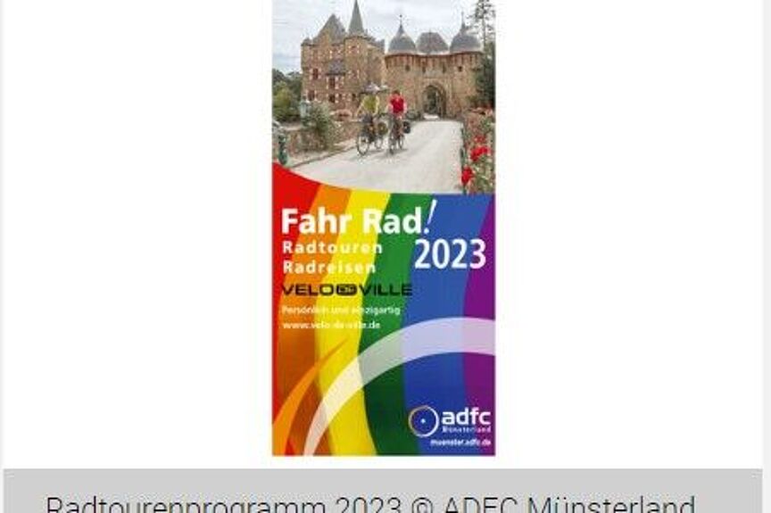 Im April jedes Jahres beginnt unser öffentliches Tourenprogramm, und es dauert bis zum Herbst. Es enthält sowohl sportliche als auch familienfreundliche und gemütliche Touren im Kreis Warendorf und darüber hinaus. Den Mitgliedern des ADFC wird das Tourenprogrammheft nach Haus gebracht oder per Post zugesandt.